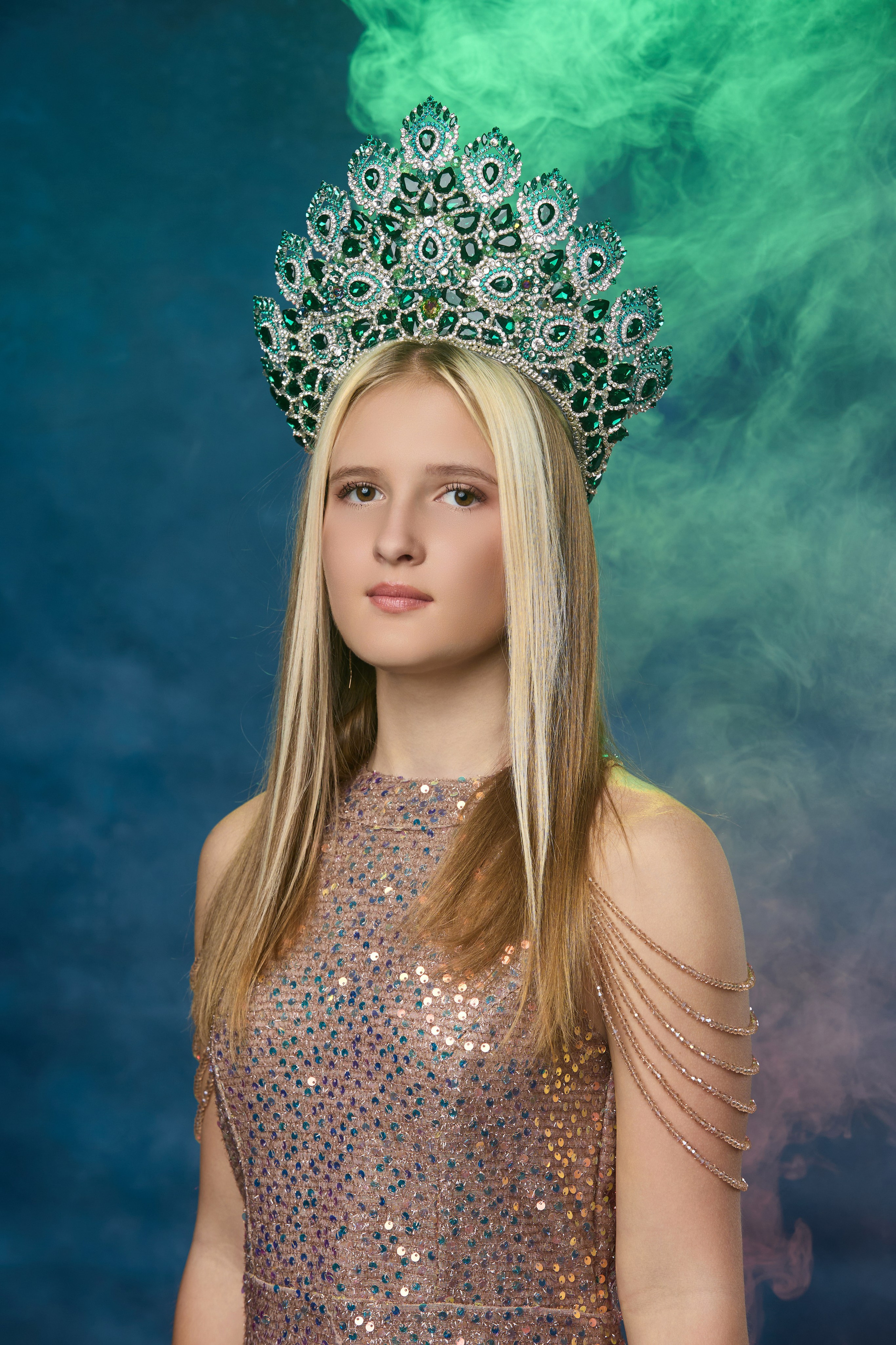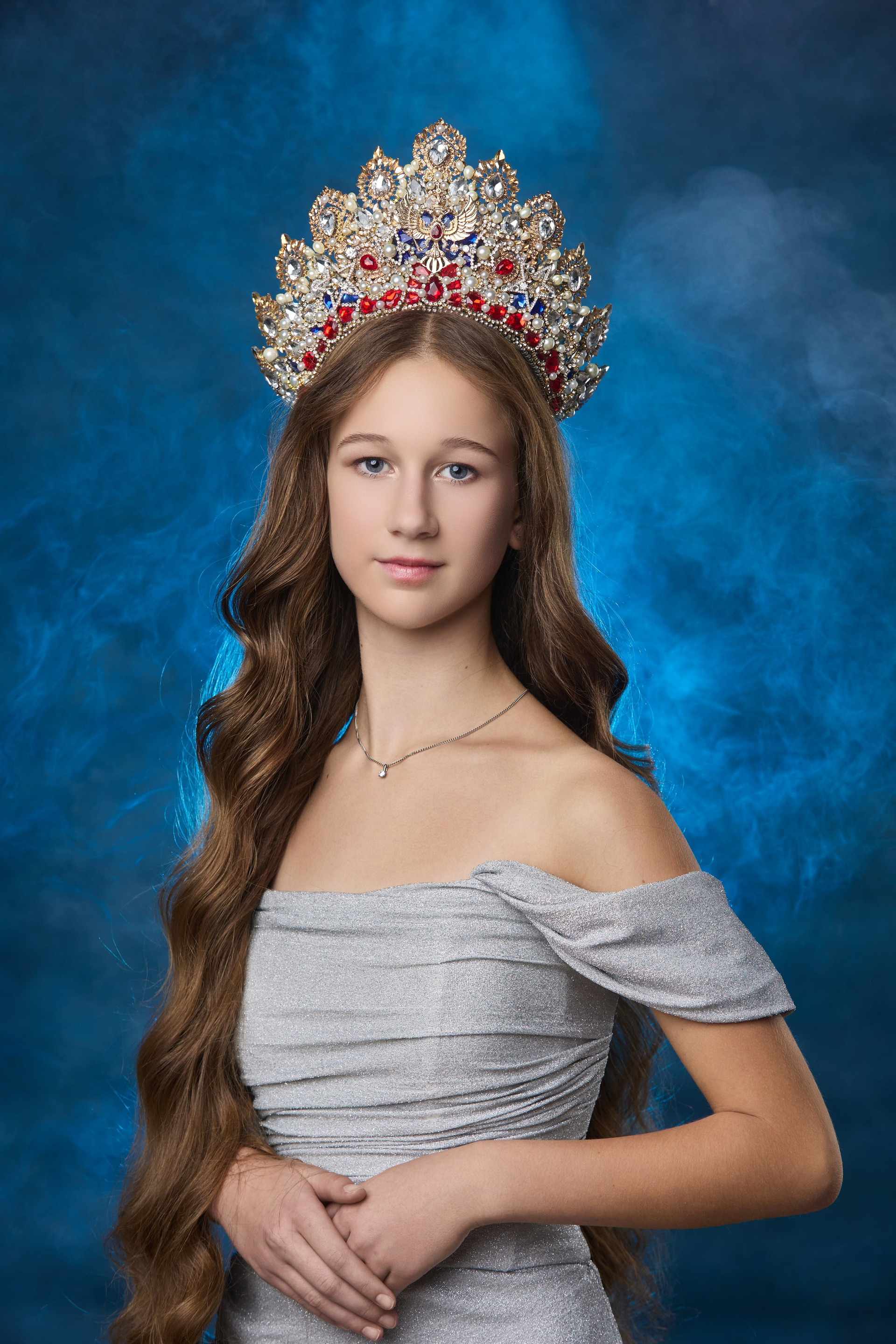 2. Фотосессия портрет, в короне и красивом платье.