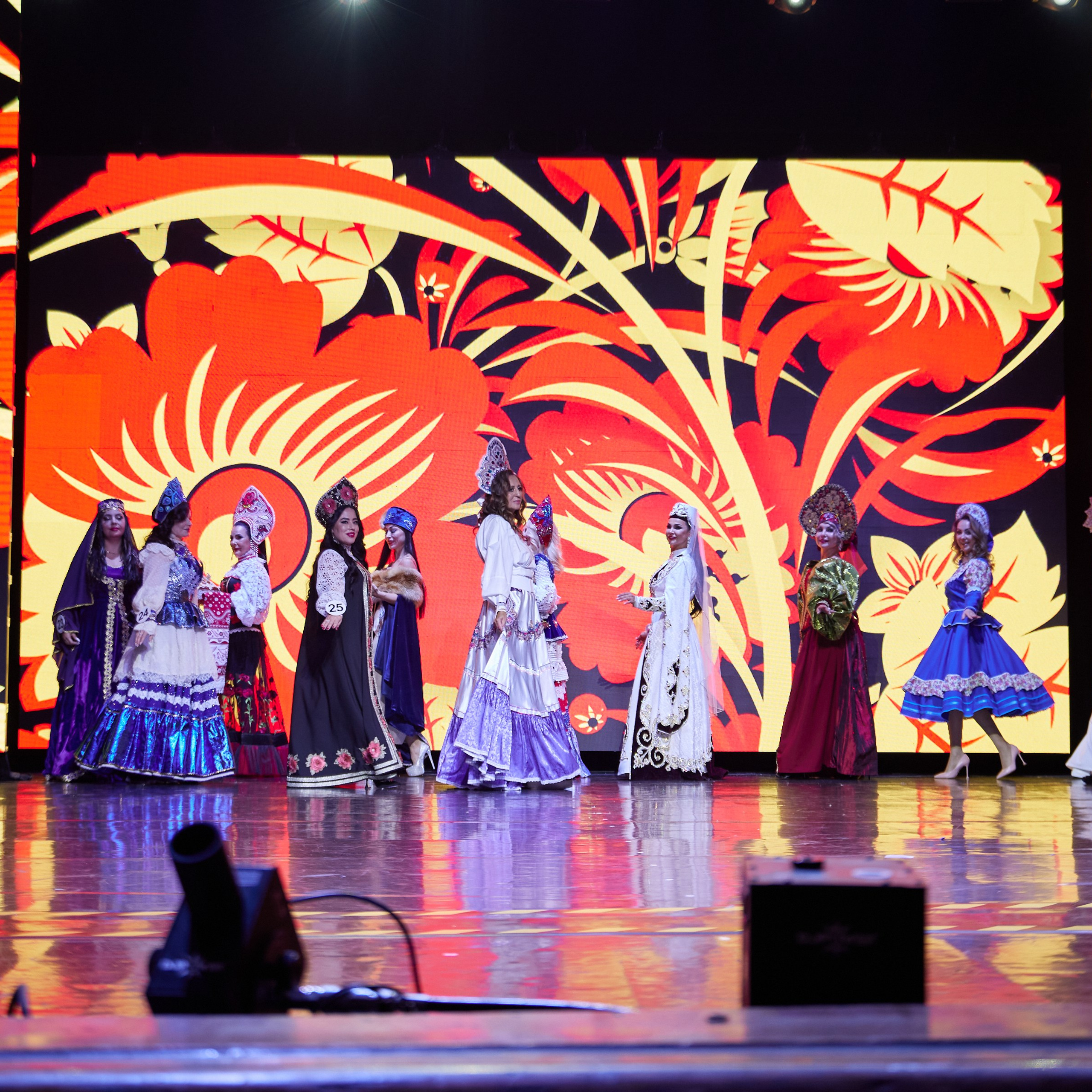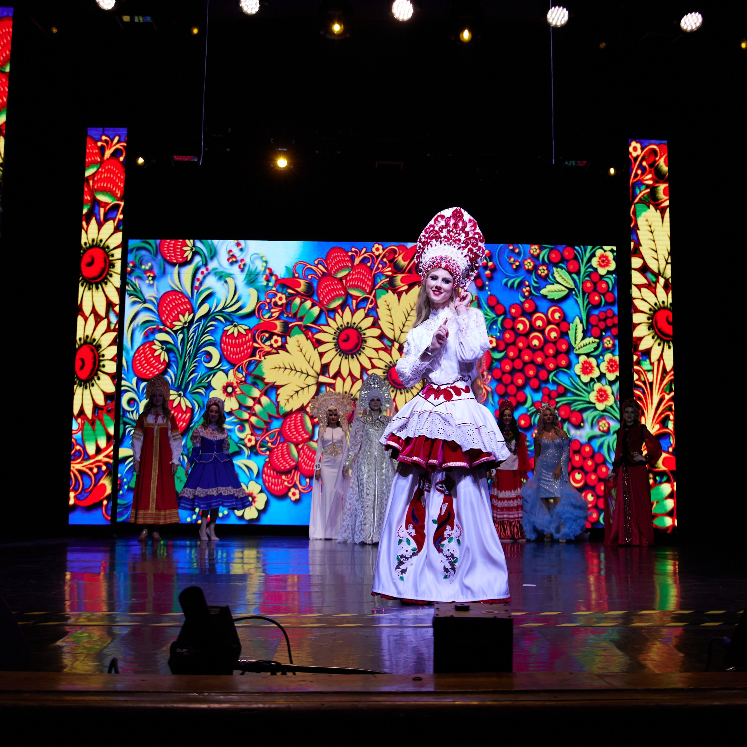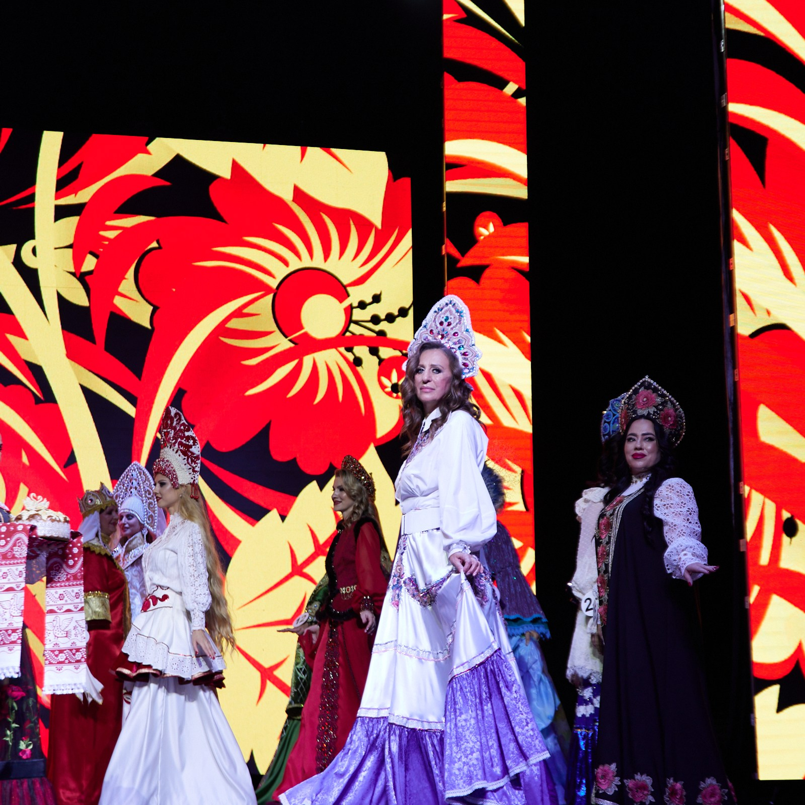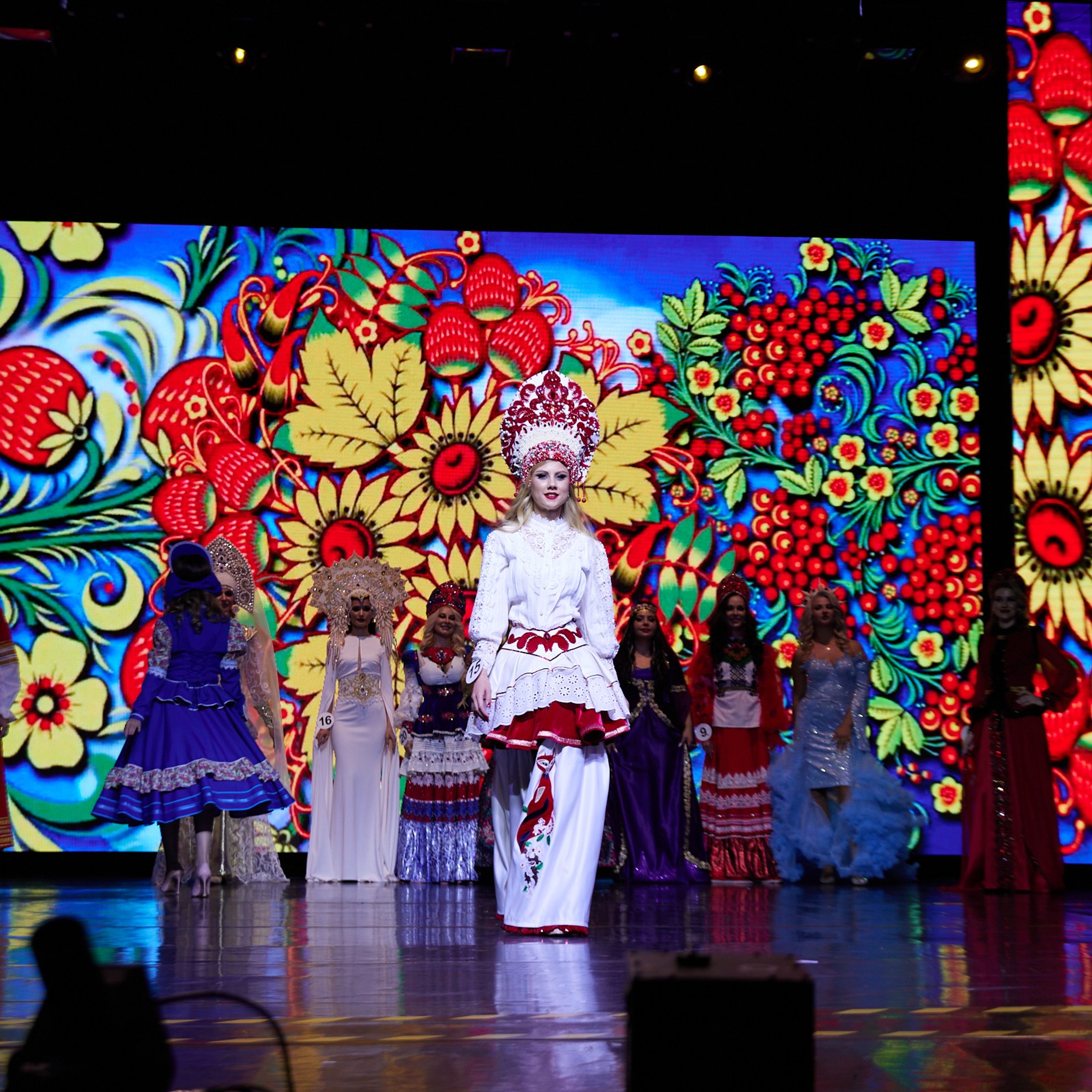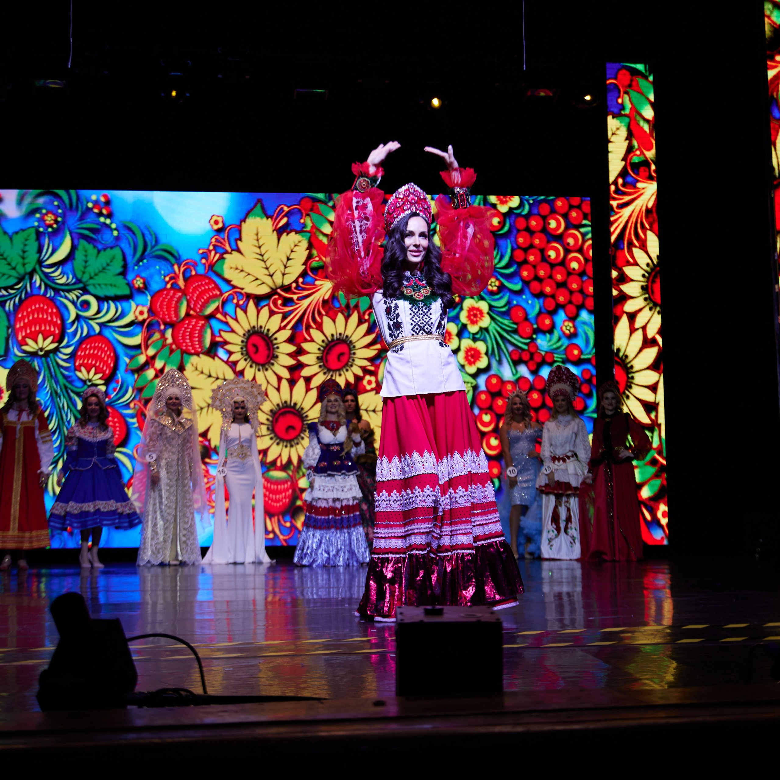 Участницы со всех городошных очень хорошо подготовились, буйство красок в течении всего конкурса радовали глаз. Самый красивый выход — в национальных костюмах!