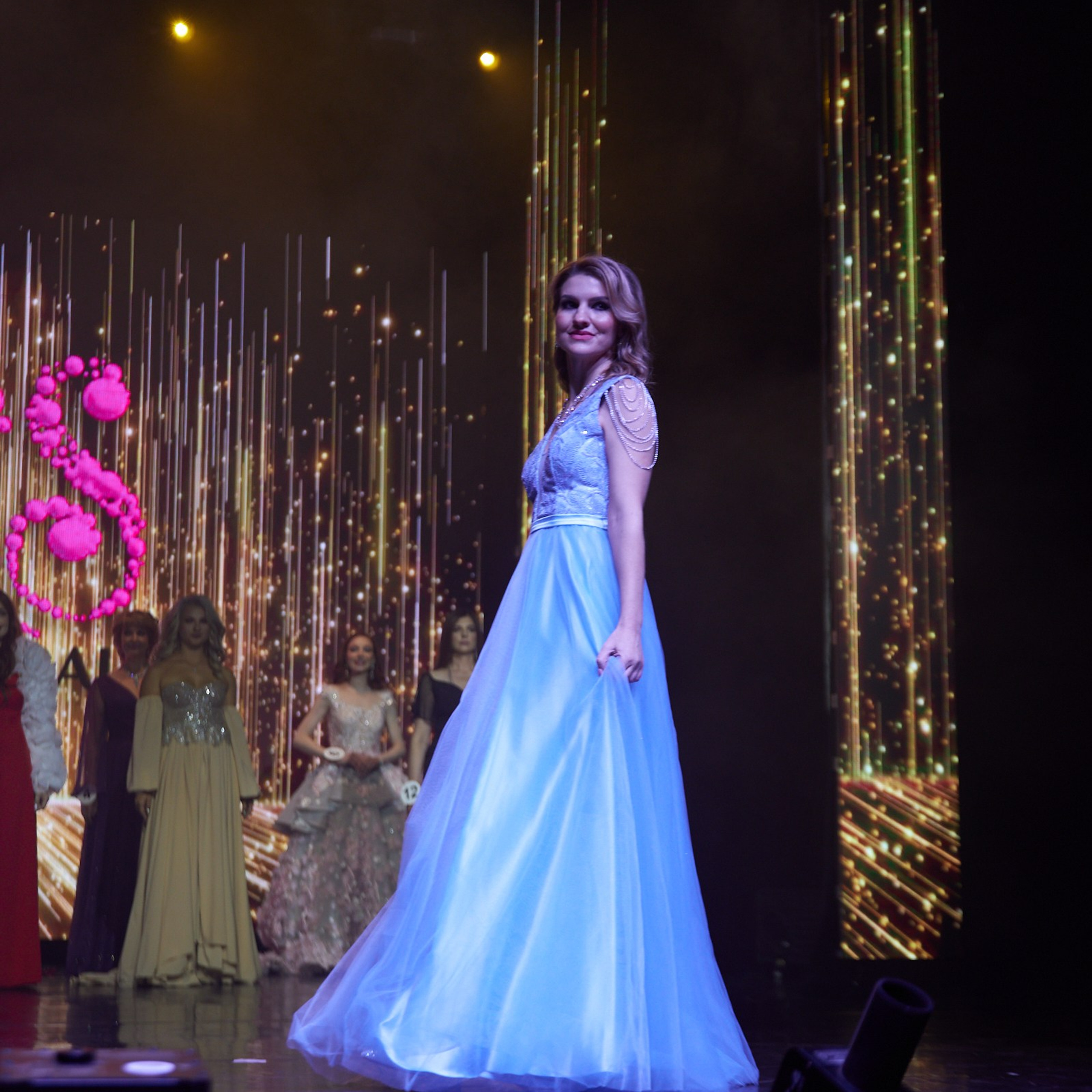 Задача, выбрать самую достойную, красивую и обаятельную. Участницы прошли несколько этапов, из которых показали все, на что способны. Это визитка, спортивный выход коммуникация, творческие номера и дефиле в дизайнерских платьях Евгении Арсентьевой.